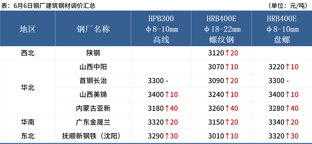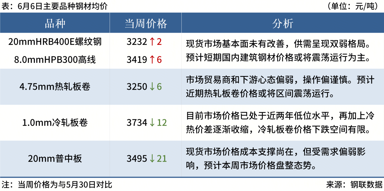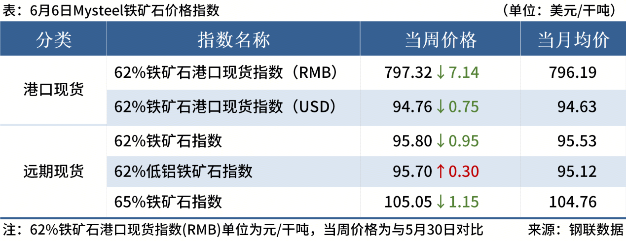 ◎  6月6日,全國(guó)主港鐵礦石成交74.30萬噸,環(huán)比減22.8%;237家主流貿(mào)易商建筑鋼材成交10.43萬噸,環(huán)比增4.9%。