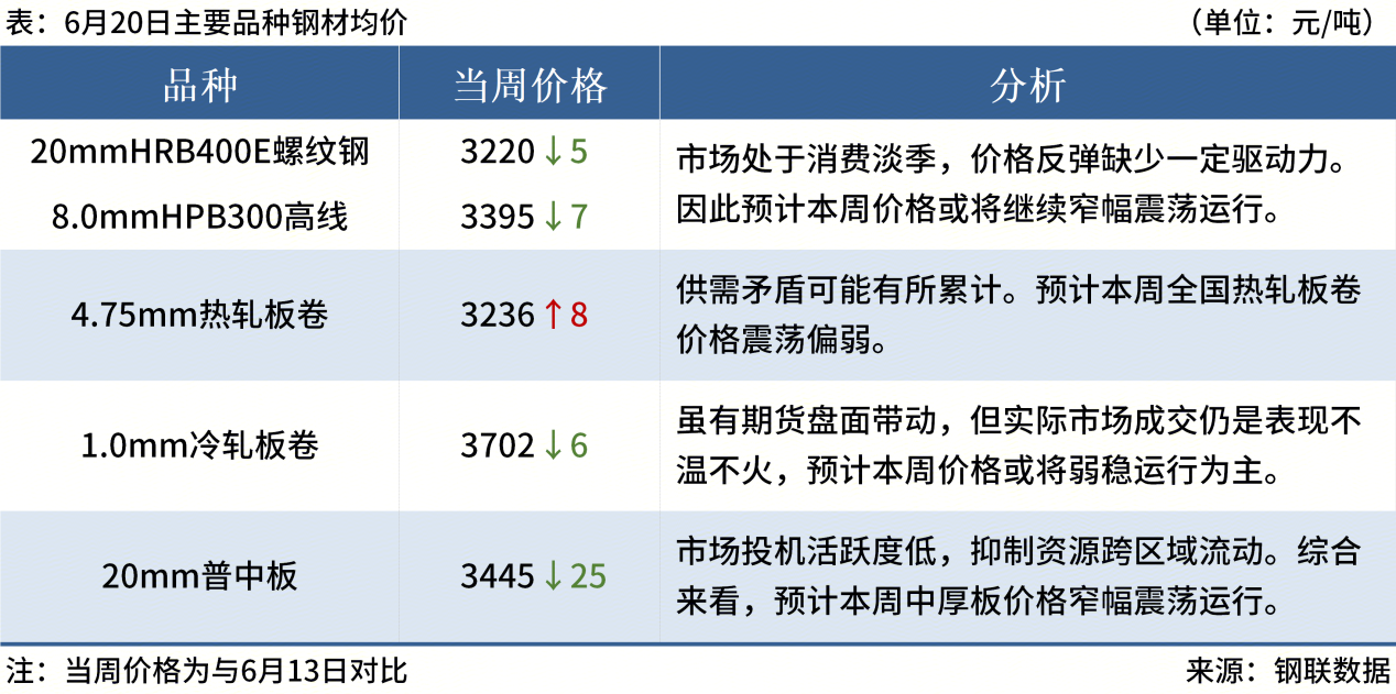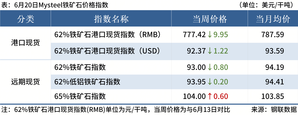 ◎ 6月20日,全國主港鐵礦石成交77.70萬噸,環(huán)比減23.8%;237家主流貿(mào)易商建筑鋼材成交9.75萬噸,環(huán)比增8.2%。