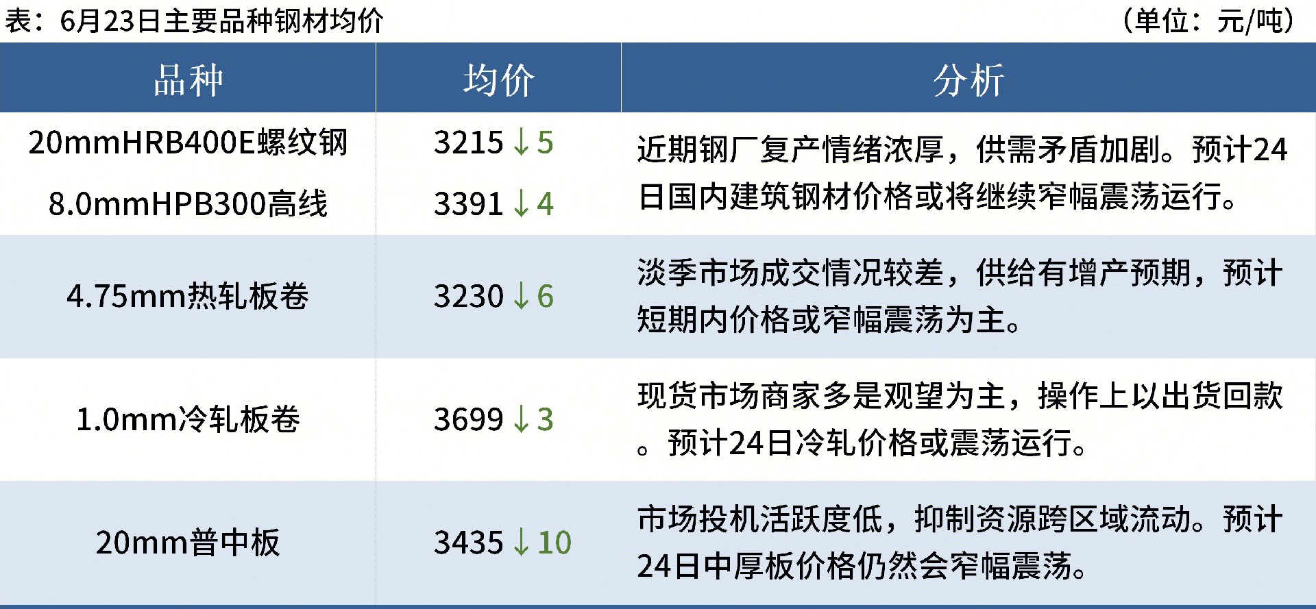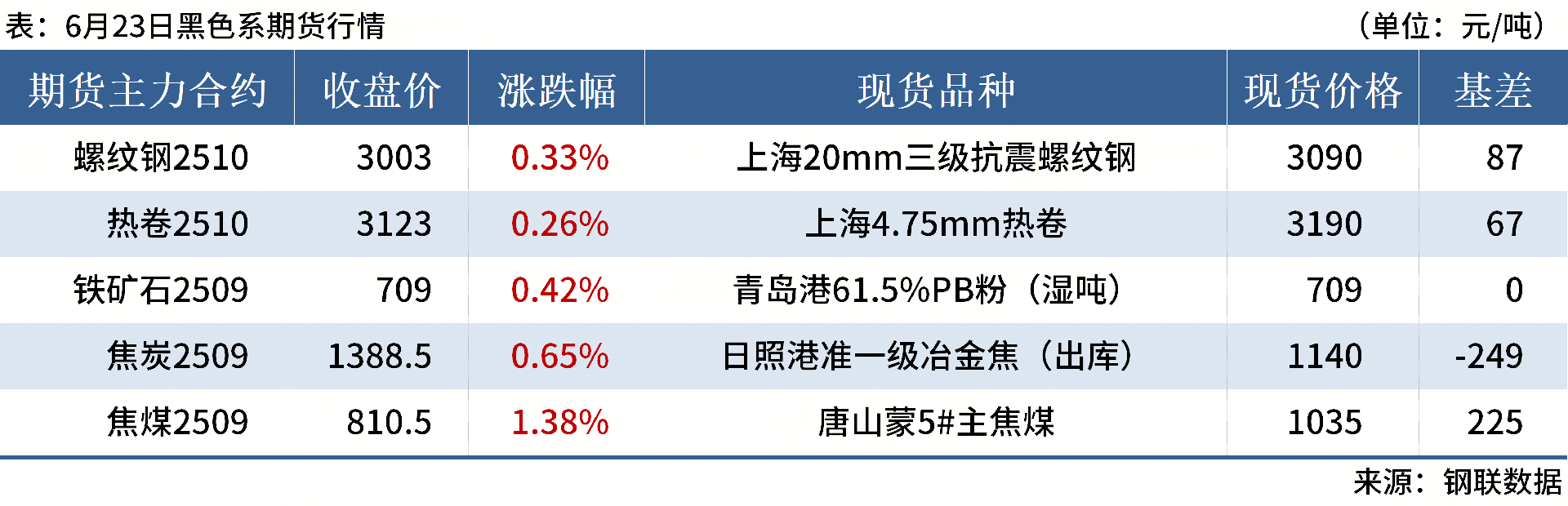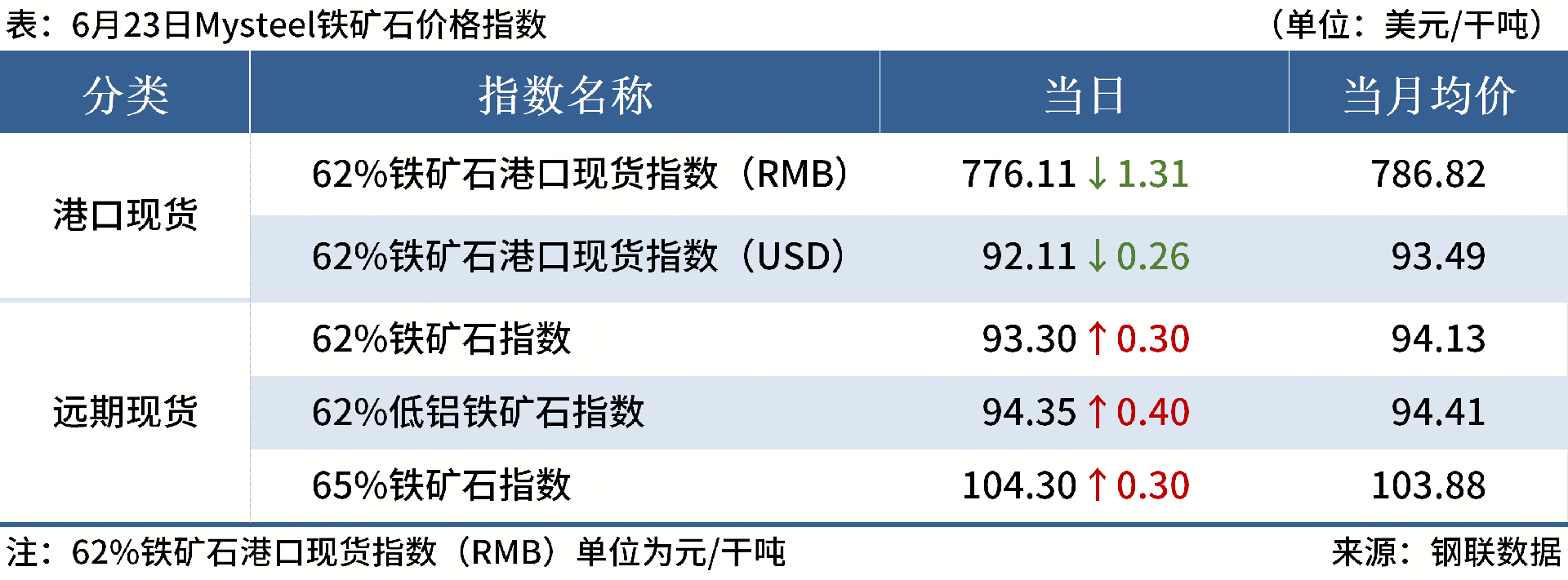 ◎ 6月23日,全國(guó)主港鐵礦石成交118.20萬(wàn)噸,環(huán)比增52.1%;237家主流貿(mào)易商建筑鋼材成交10.30萬(wàn)噸,環(huán)比增5.6%。