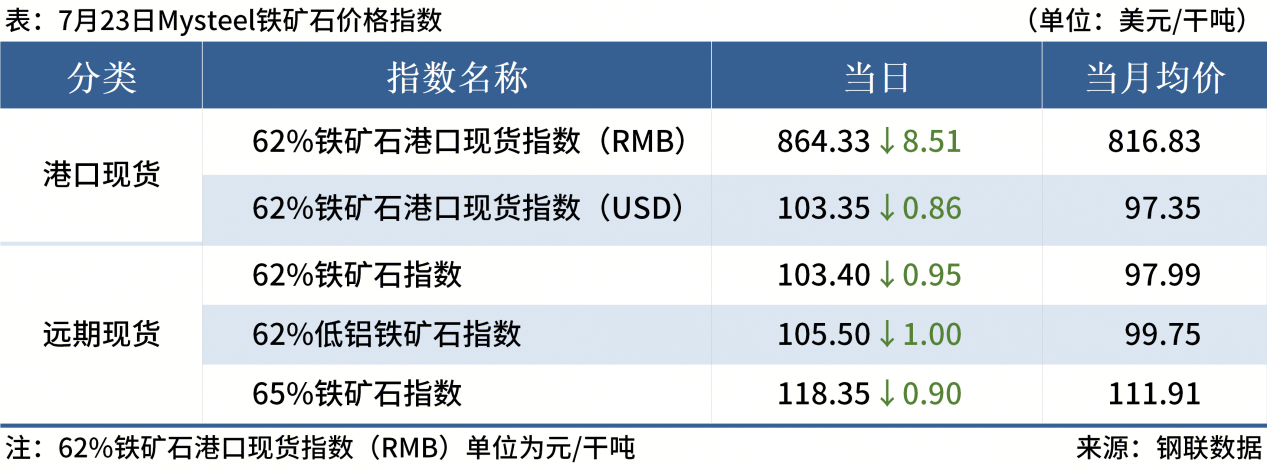 ◎ 7月23日,全國(guó)主港鐵礦石成交86.40萬噸,環(huán)比減29.9%;237家主流貿(mào)易商建筑鋼材成交9.09萬噸,環(huán)比減27.9%。