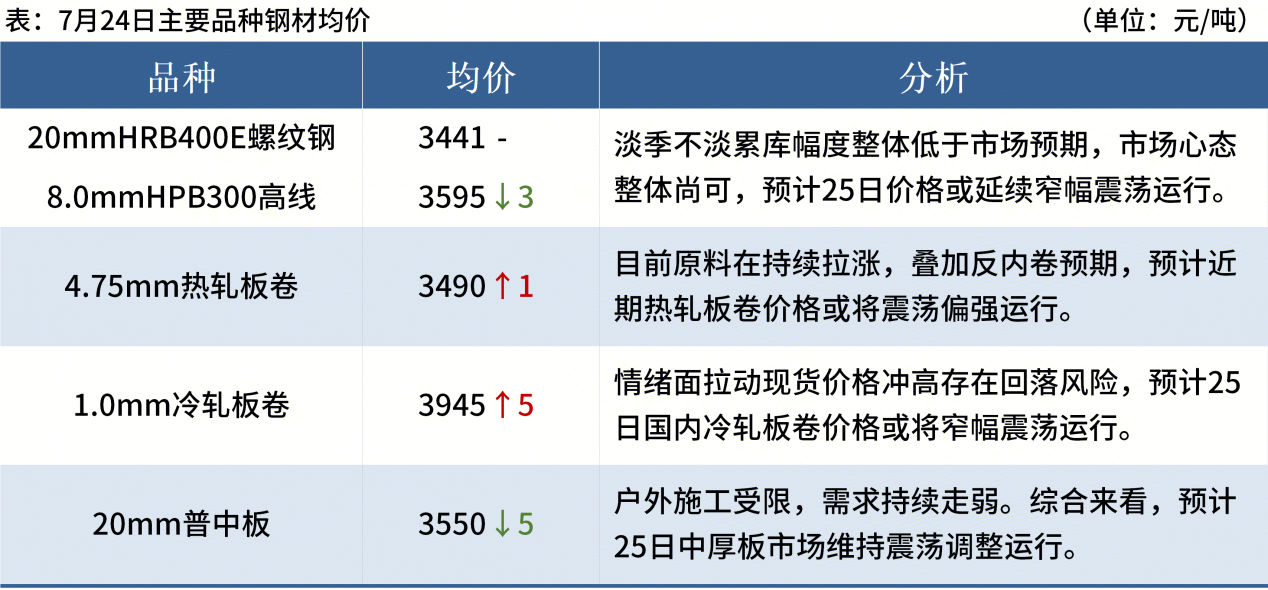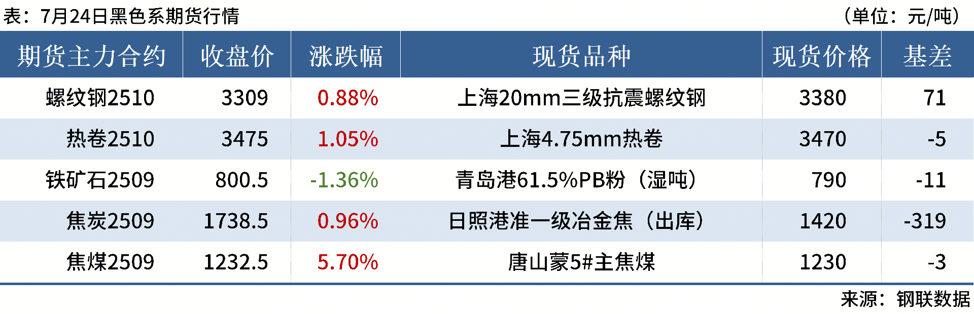 ◎ 7月24日,多地焦企提漲焦炭第3輪,下游部分鋼廠已經(jīng)接漲,主流鋼廠25日招標,幅度50-55元/噸,執(zhí)行時間7月25日零點。
