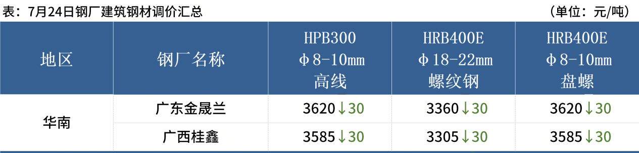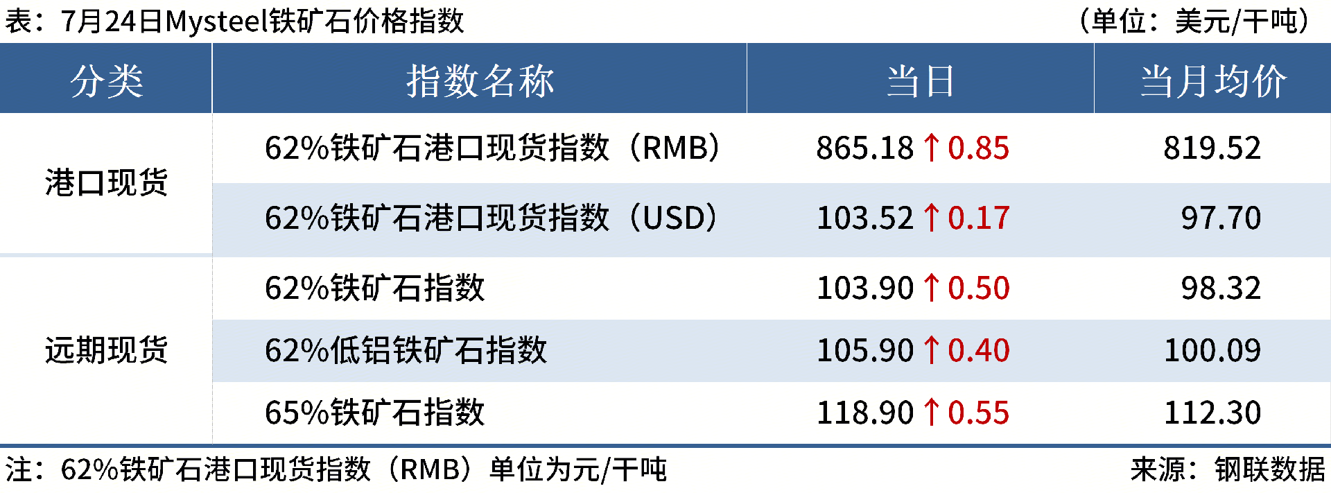 ◎ 7月24日,全國主港鐵礦石成交96.60萬噸,環(huán)比增11.8%;237家主流貿(mào)易商建筑鋼材成交11.15萬噸,環(huán)比增22.6%。