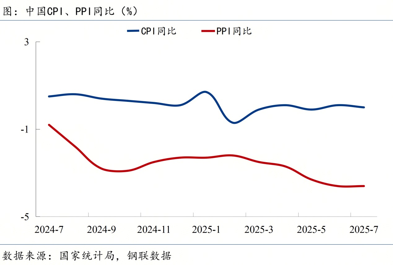 ◎ 國家統(tǒng)計(jì)局:7月份,擴(kuò)內(nèi)需政策效應(yīng)持續(xù)顯現(xiàn),CPI環(huán)比由上月下降0.1%轉(zhuǎn)為上漲0.4%,同比持平;受季節(jié)性因素疊加國際貿(mào)易環(huán)境不確定性影響,PPI環(huán)比下降0.2%,環(huán)比降幅比上月收窄0.2個(gè)百分點(diǎn),同比下降3.6%。