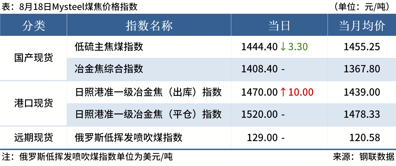 ◎ 8月18日,主流焦企對焦炭價(jià)格進(jìn)行第七輪提漲,搗固濕熄焦上調(diào)50元/噸,搗固干熄焦上調(diào)55元/噸,自8月19日0時(shí)起執(zhí)行。