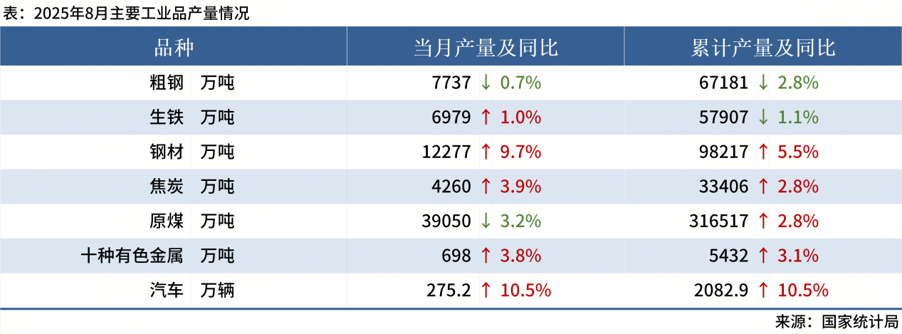 ◎ 國家統(tǒng)計局公布數(shù)據(jù):2025年8月中國粗鋼產(chǎn)量7737萬噸,同比下降0.7%。其他主要工業(yè)品產(chǎn)量如下: