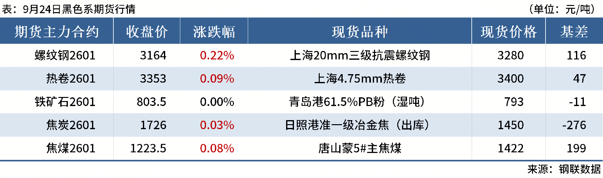 ◎9月24日,全國主港鐵礦石成交155.00萬噸,環(huán)比減13.5%;237家主流貿(mào)易商建筑鋼材成交10.39萬噸,環(huán)比增12.9%。